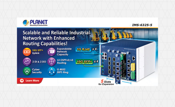 Промышленный модульный коммутатор IMS-6325-5 L3 с креплением на DIN-рейку. Коммутатор разработан специально для критически важных инфраструктур:
